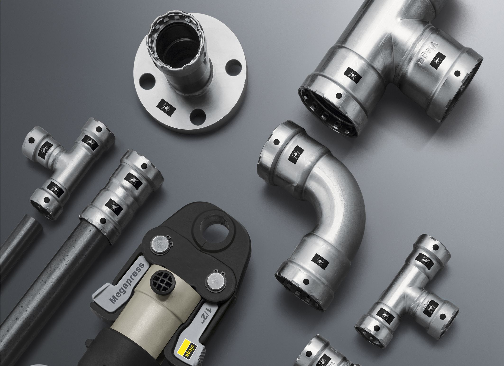 В линейке системы Viega Megapress 126 различных фитингов, муфт, колен, резьбовых и конусных переходников,